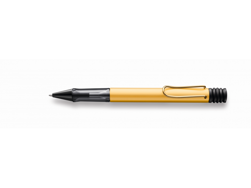 Aluminium eloxiert in Gold Farbe / Metallclip und Details vergoldet / ergonomisches Griffstück / mit Großraummine M 16 M schwarz / mit Metalletui