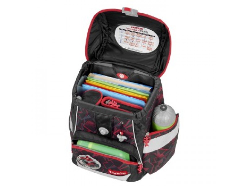 Den Step by Step 2in1 Plus gibt es als 6-teiliges Set, bestehend aus Schulranzen, Federmäppchen (komplett bestückt), Schlamperetui, Sportbeutel, MAGIC MAGS und Schablonen-Set.