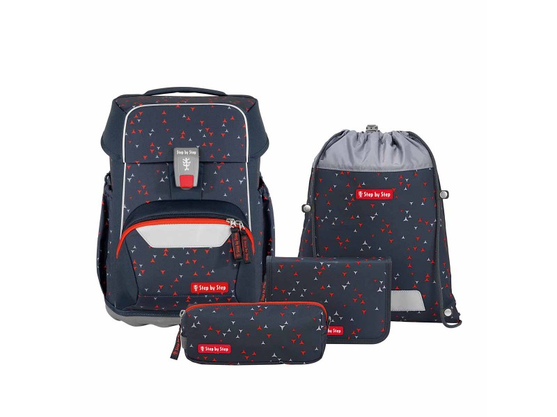 Den Step by Step Basis gibt es als 4-teiliges Set, bestehend aus Schulranzen, Federmäppchen (unbestückt), Schlamperetui, Turnbeutel