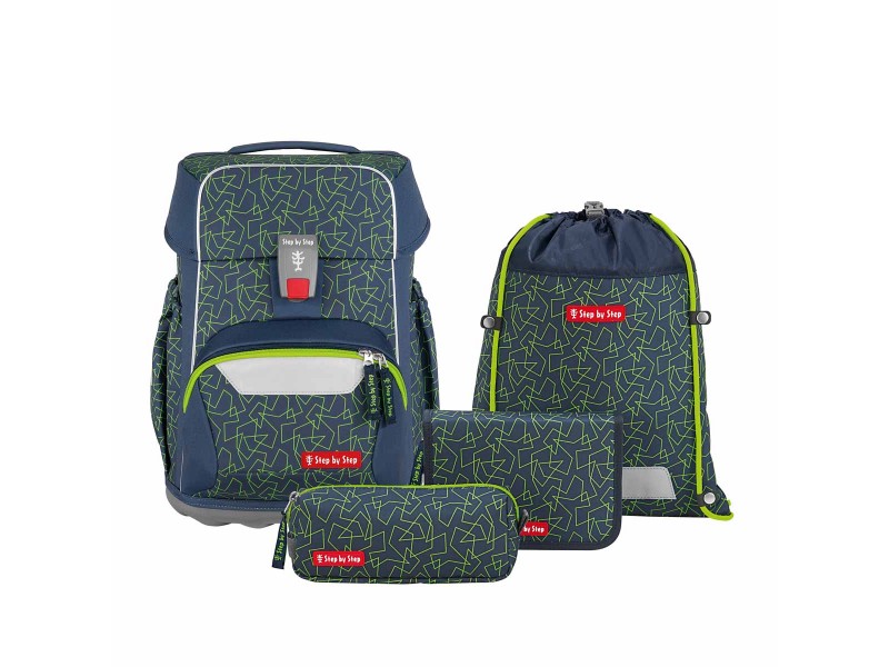 Den Step by Step Basis gibt es als 4-teiliges Set, bestehend aus Schulranzen, Federmäppchen (unbestückt), Schlamperetui, Turnbeutel