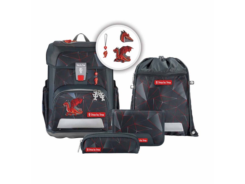 Den Step by Step Cloud gibt es als 5-teiliges Set, bestehend aus Schulranzen, Federmäppchen (komplett bestückt), Schlamperetui, Sportbeutel, MAGIC MAGS.