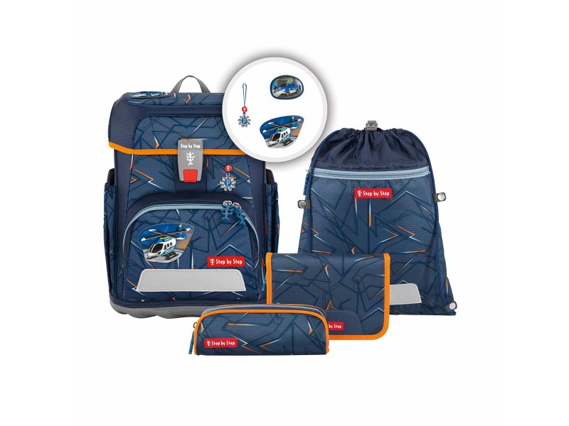 Den Step by Step Cloud gibt es als 5-teiliges Set, bestehend aus Schulranzen, Federmäppchen (komplett bestückt), Schlamperetui, Sportbeutel, MAGIC MAGS.
